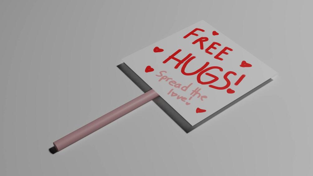 Spread Love and happiness by giving hugs! Let everyone know you are willing to make their day by waving this sign around!